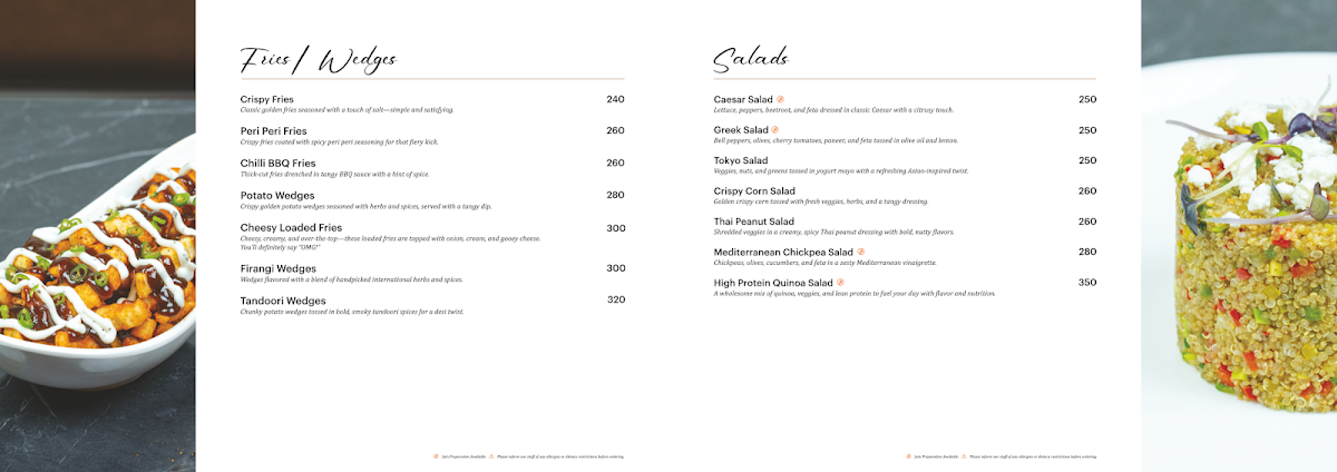 Chef’s creation you can’t miss! A vibrant medley of peri peri paneer, crisp capsicum, zucchini, and olives packed with bold flavor.